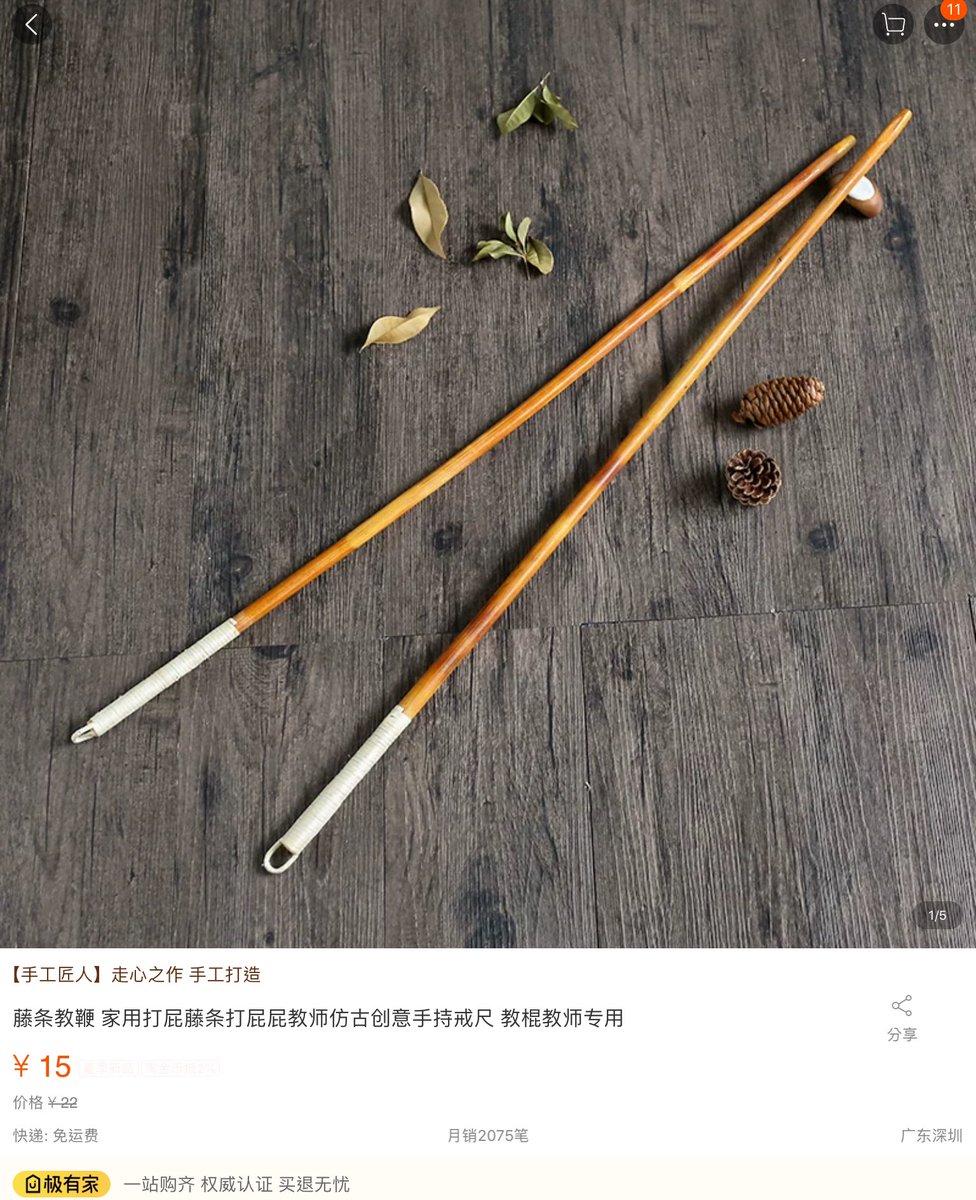 Not in China. You can buy the cane at TB. It sells like hot cake with 2075 sales monthly. The description says “for home use, for butt beating, for teachers, nostalgia...”pic.twitter.com/jc9LCWP4gb