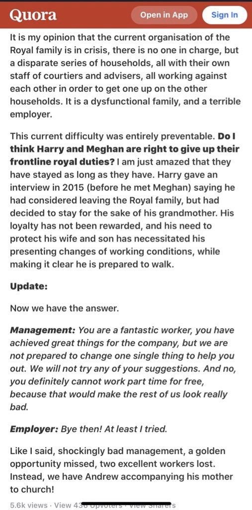 A very good explanation of why Harry said enough is enough and got his family out if that mess.https://twitter.com/freepeeper/status/1220206493632430080 …