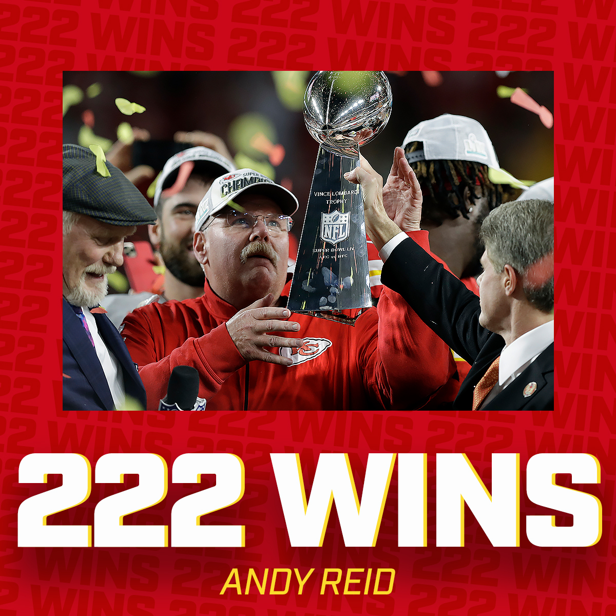 On 02/02/2020, Andy Reid got his 222nd win as a head coach.