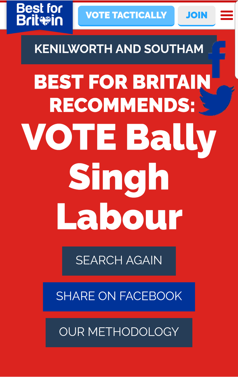 Also delighted to announce that @BestForBritain support me to defeat Tories in Kenilworth and Southam constituency @LabourKandSpic.twitter.com/TCjMKIy19z