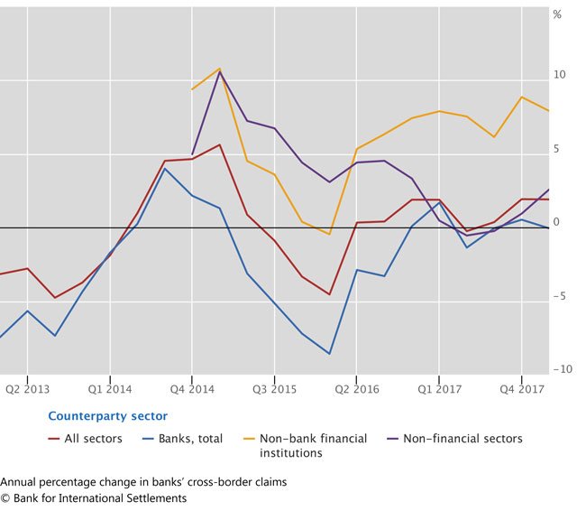 Cross-border credit to non-bank financials like investment funds & special purpose vehicles recorded another strong expansion of 8% in year to end-March 2018