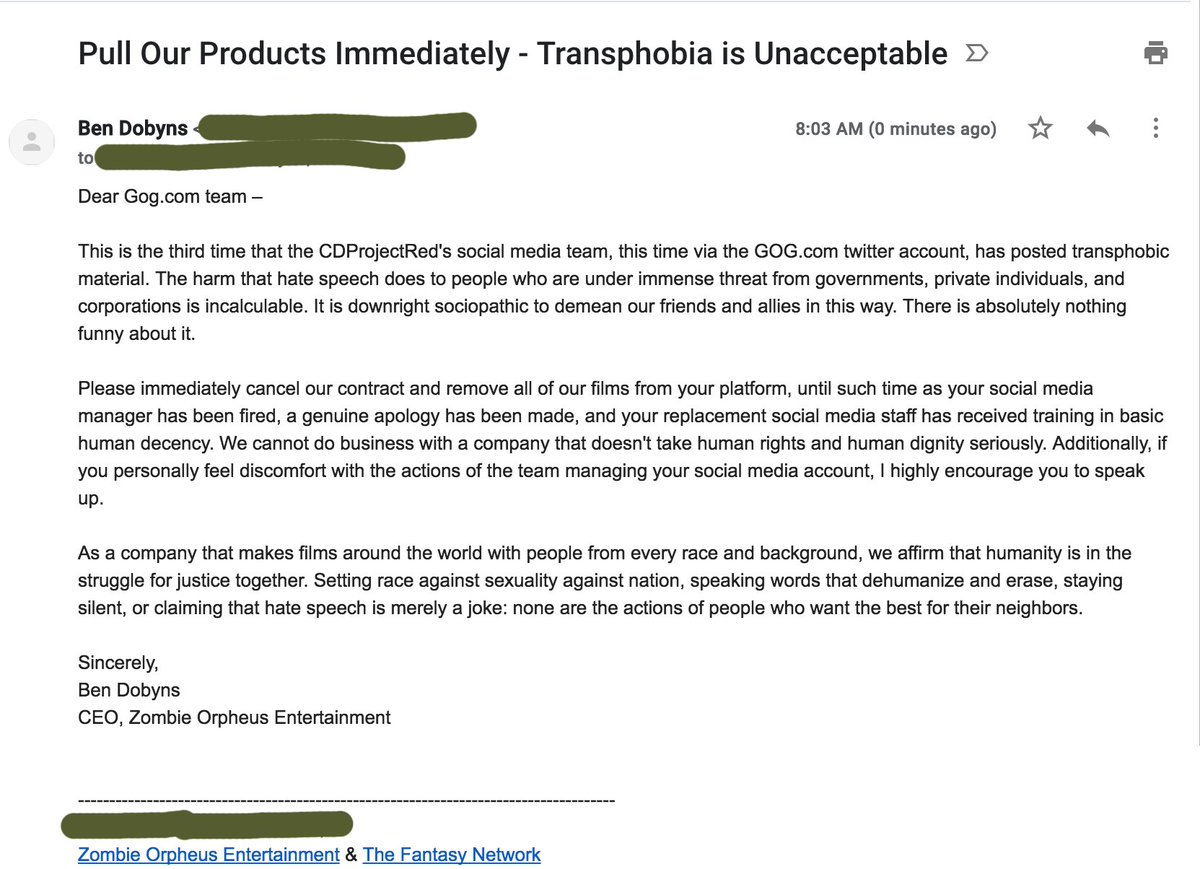 1/3 We are cancelling our contract with @GOGcom and have asked them to remove our films from their platform immediately. Zombie Orpheus Entertainment does not do business with companies that express hate speech.pic.twitter.com/8GG7S8qBz7