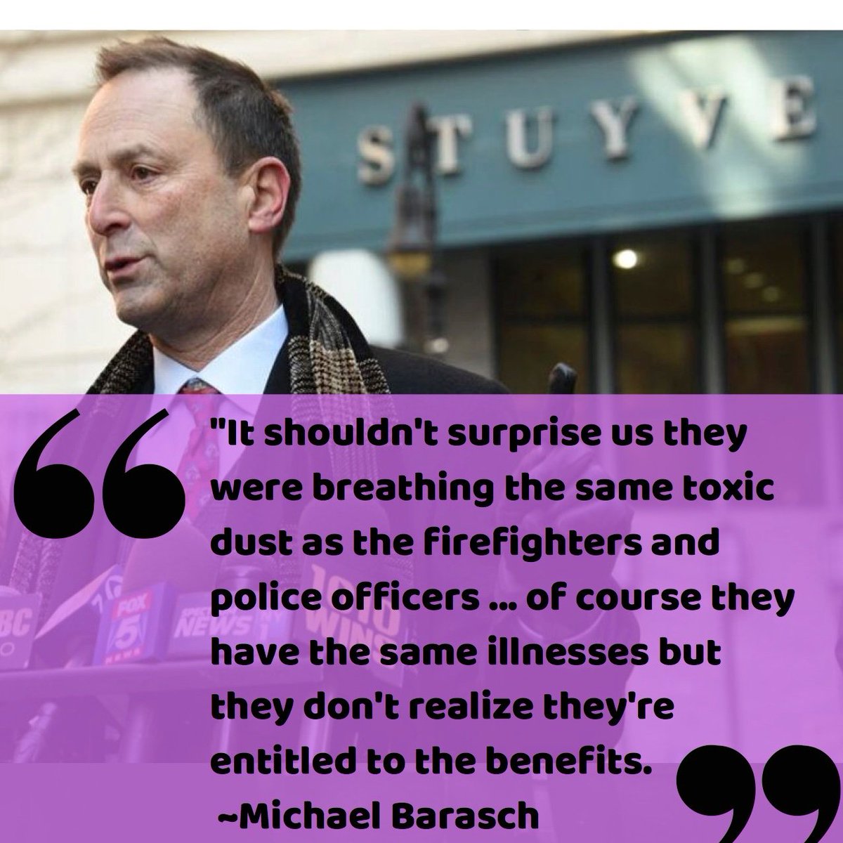 Managing Partner Michael Barasch and our firm continue to spread the word about the resources and compensation available to the 9/11 community, especially students, teachers, residents, and downtown workers. Take a minute today to spread the news! Join the effort and Retweet!pic.twitter.com/w72QSnYxn7