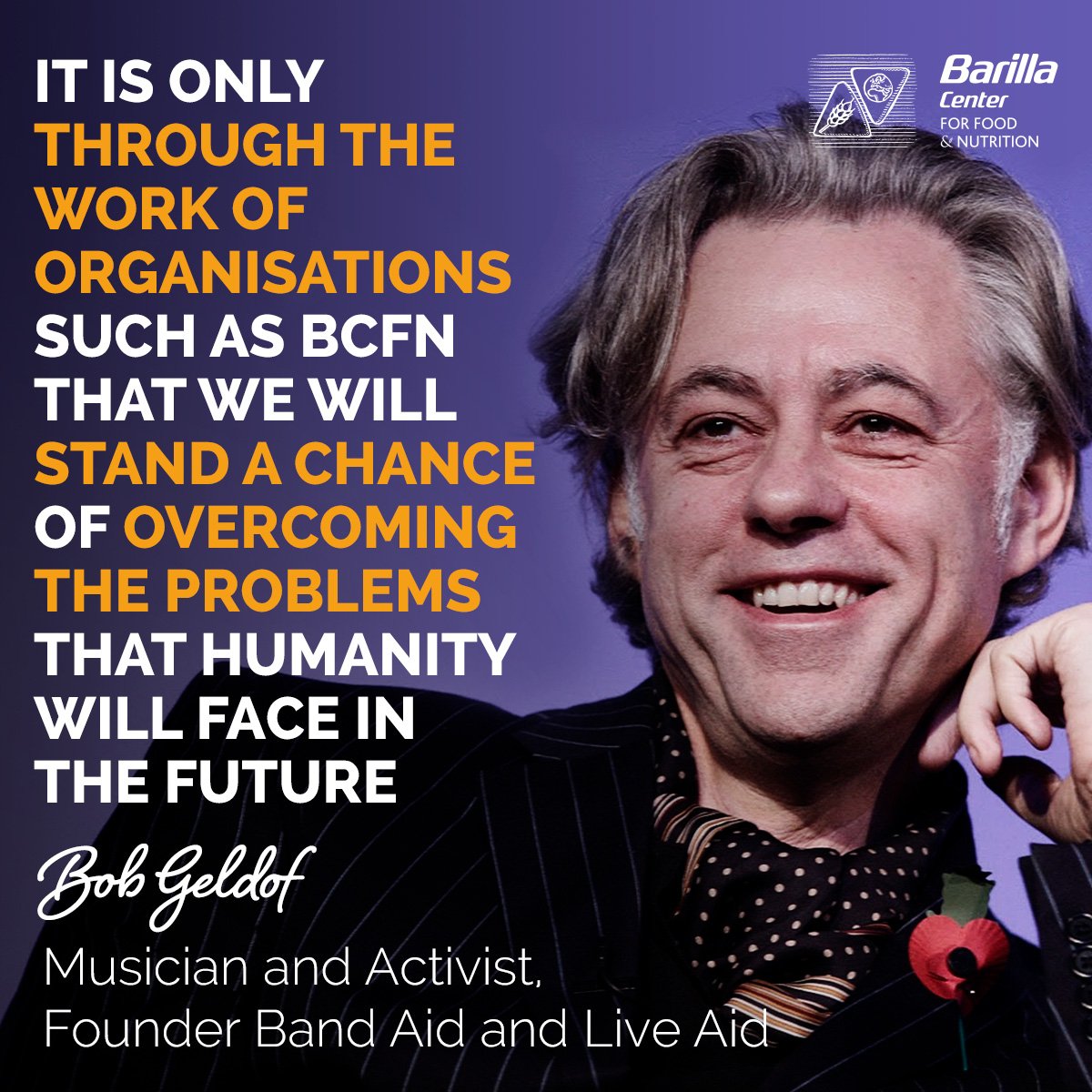 "I am greatly looking forward to being in Italy with the Barilla Centre for Food & Nutrition Foundation shortly". From Live Aid to the next #BCFNforum: we're glad to have Bob Geldof on Dec 5th! Don't miss him! Register now on http://bit.ly/BCFNforum pic.twitter.com/MprL1hiK7E