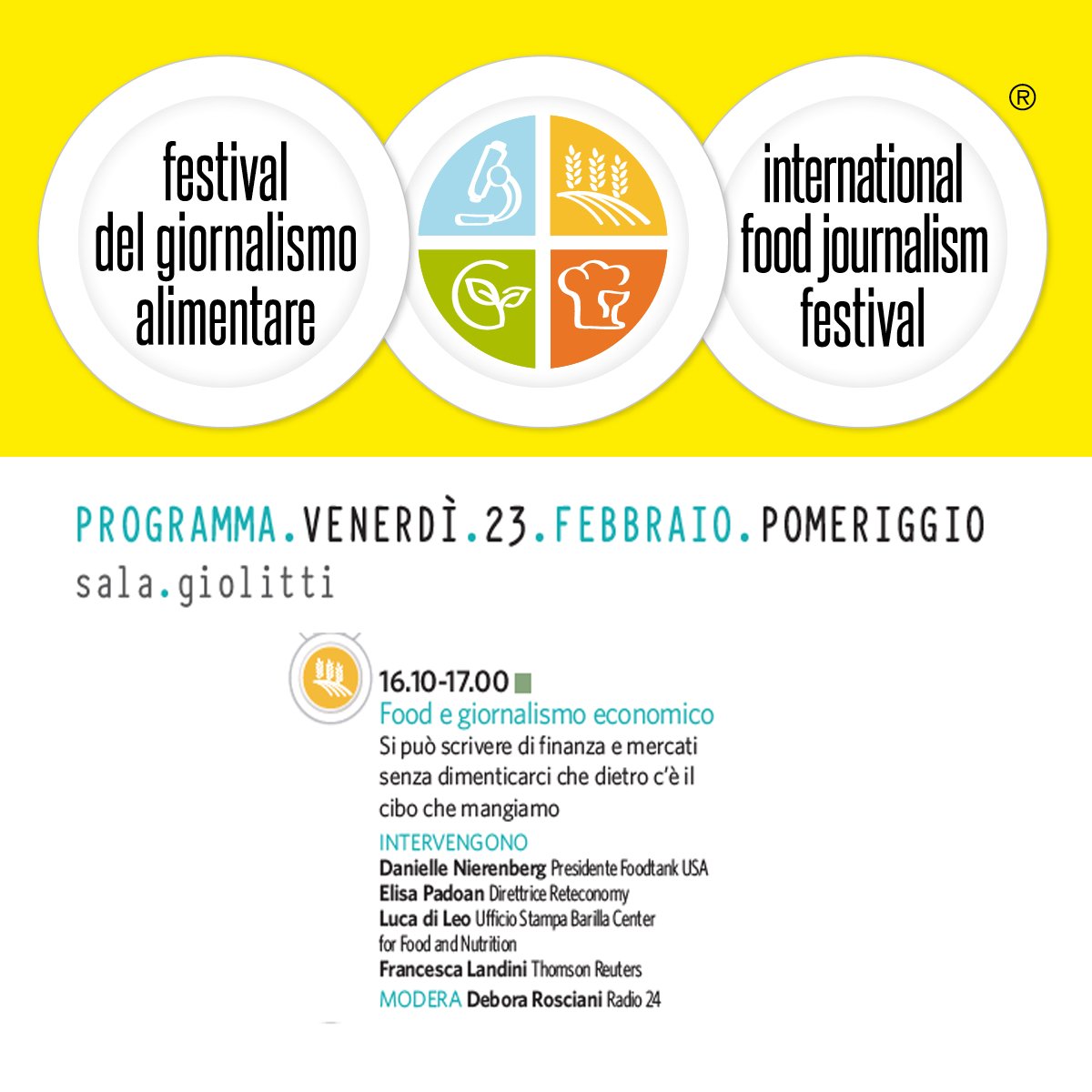Domani e venerdì saremo al #foodfest18 di Torino per parlare di sostenibilità alimentare insieme a @fra_landini @lucadileo72 @cmccclimate @silvialandi13 e tanti altri. Vieni a trovarci o segui il live qui su Twitter! Info e programma completo su http://festivalgiornalismoalimentare.it pic.twitter.com/ps44UavXDa