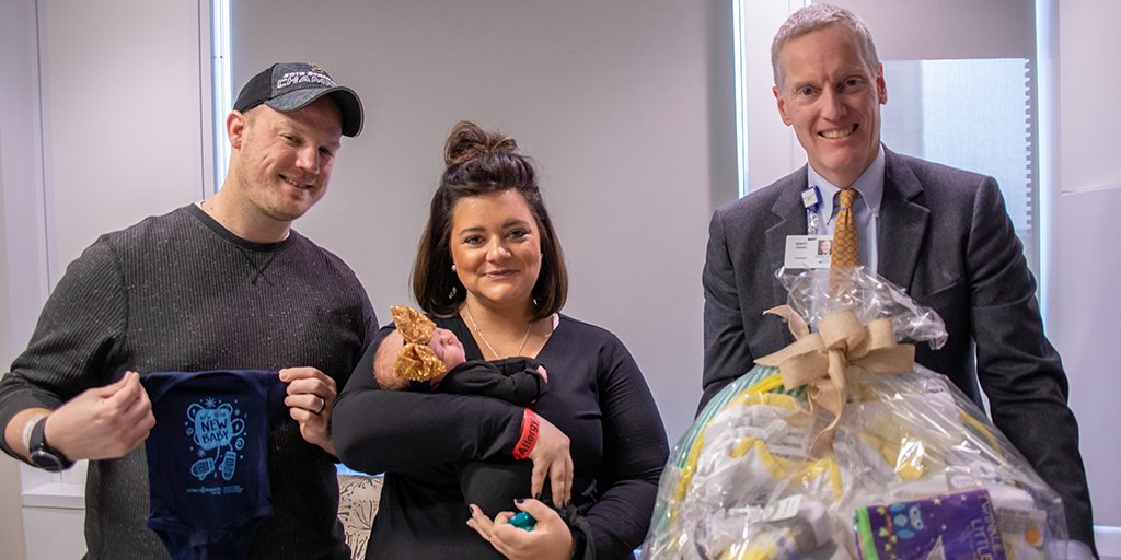 Our first baby of the new year was born at 6:28 a.m., Jan. 1, 2020, at our Women & Infants Center. Hospital president Bob Cannon delivered a gift basket and well wishes to the proud family.pic.twitter.com/3BxsLrxOqR