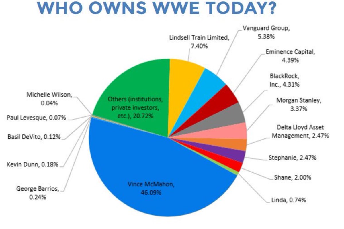 As of this month, Vince McMahon owns 46% of WWE stock. Here's who owns what, according to
