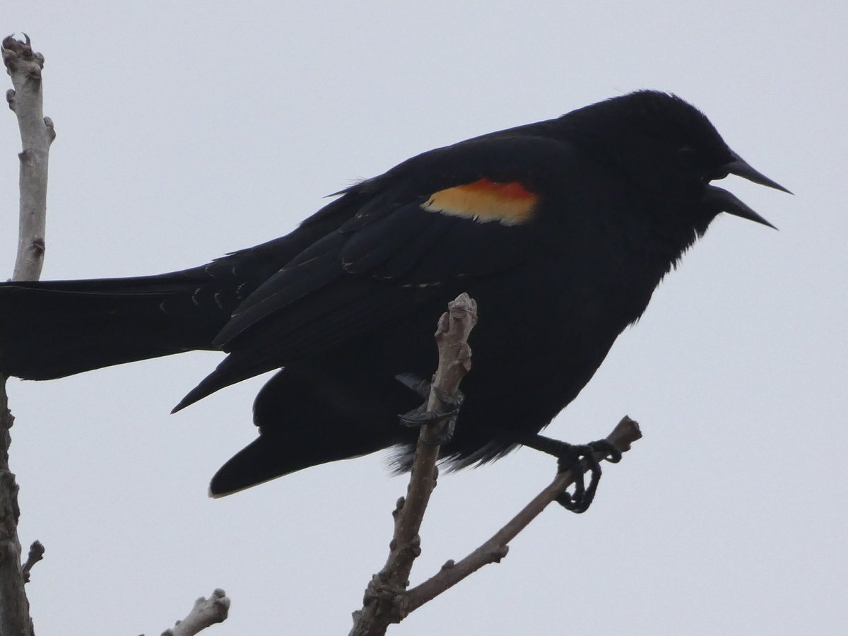 #RedWingedBlackbird I like the flash of colour against the silhouette-like black of the bird.pic.twitter.com/8wH6JkDXET