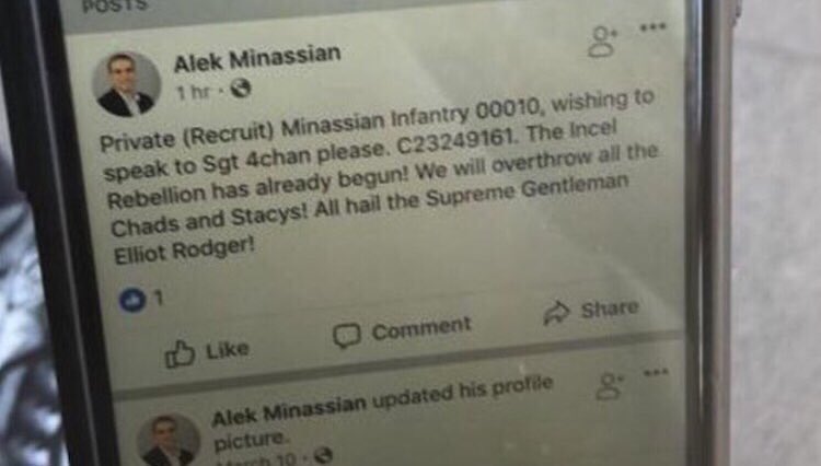 What a coward! They are all pathetic cowards. As is always the case with terrorists. #Incel should be treated as a #terrorist organization. The #TorontoAttack should be treated as such, the crime was committed under the banner of an ideology, terrorism by definition! #incelspic.twitter.com/tStKYg4Old