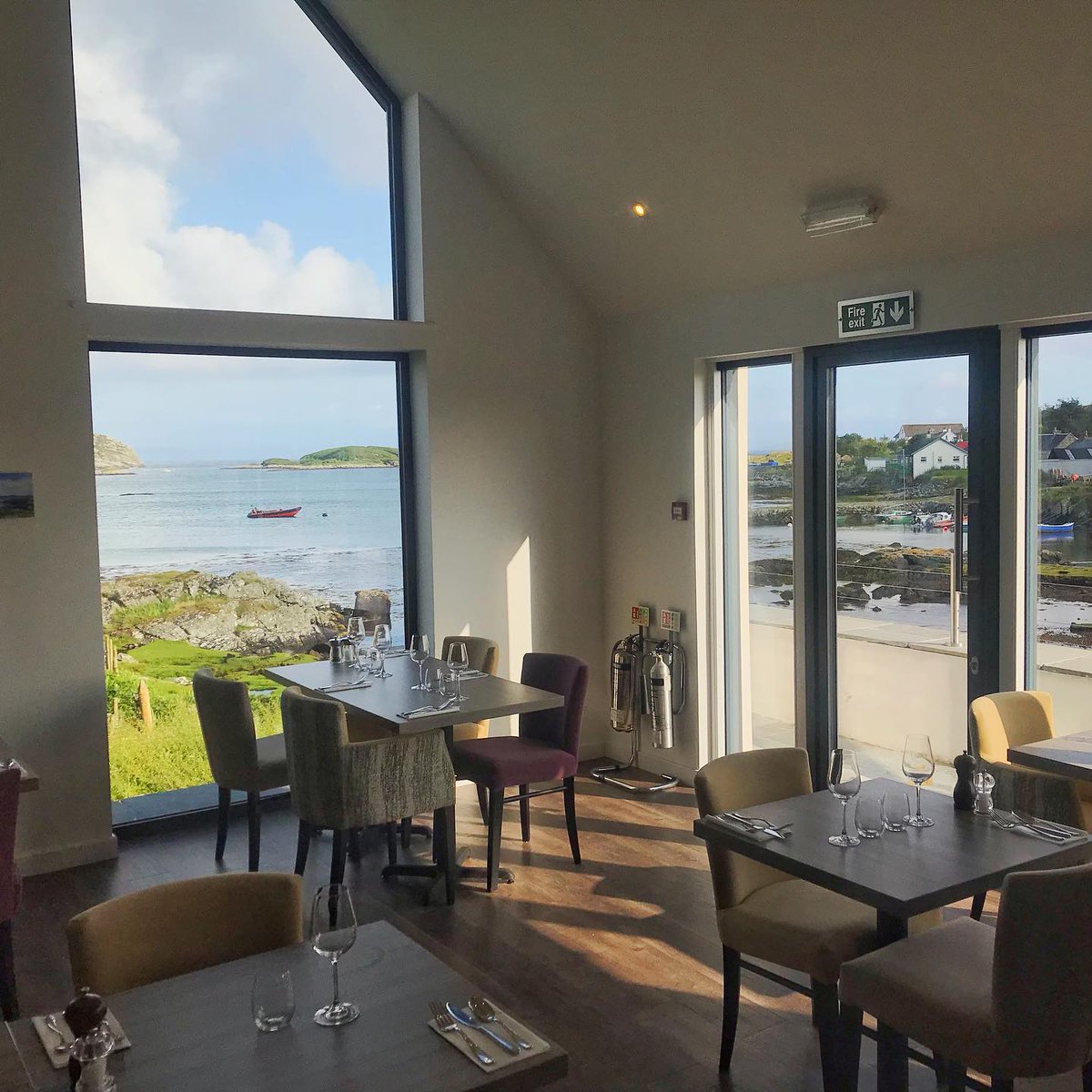 #Coll where the stunning Coll Hotel serves up amazing seafood. After a great day on the water our clients enjoy amazing food with a view! We also do a little alfresco seaweed tasting during our#snorkelling too!#scotlandhour#ycw2020pic.twitter.com/aNa7NkY2gV