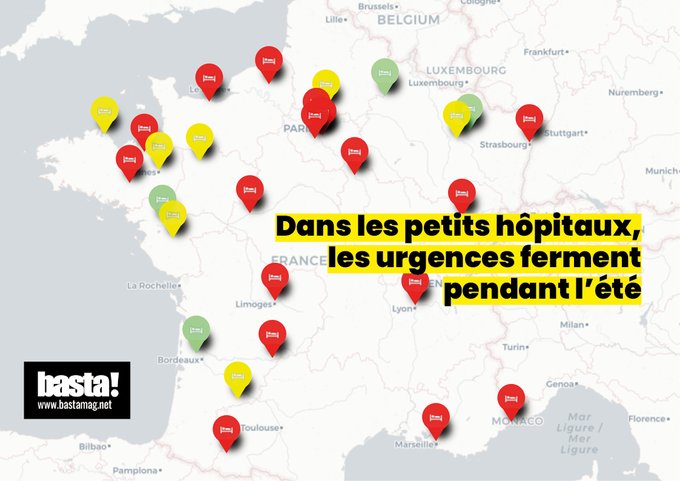 #COVID19 Pourtant, de nombreux hôpitaux n’assurent plus les urgences pendant la période estivale Conseil : cet été, n'ayez pas un accident dans une petite ville ou région rurale (cf. carte publiée par@Bastamag)@olivierveran@Sante_Gouv https://www.bastamag.net/suppressions-de-lits-hopitaux-carte-suivi-fermeture-urgences …pic.twitter.com/Dhfe9x77G2