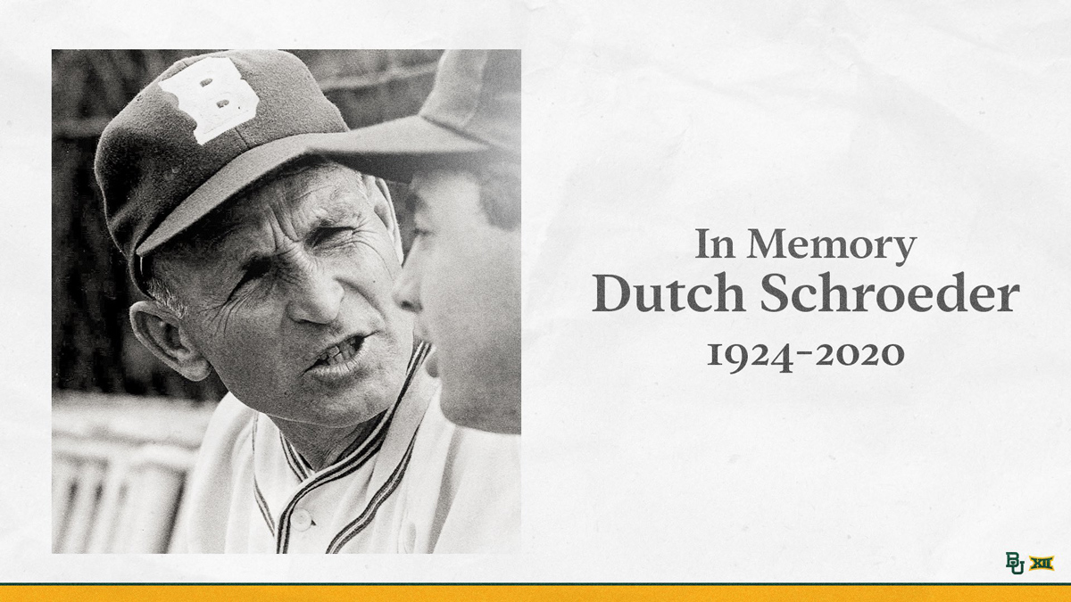 Our thoughts & prayers are with the family & friends of former Baylor coach & longtime BU ambassador Dutch Schroeder (BS '49) following his passing. Schroeder was head baseball coach from 1961-73 and a BU letterman's association leader for 40+ years: https://bit.ly/36wG29T pic.twitter.com/g8Xcckw9gY