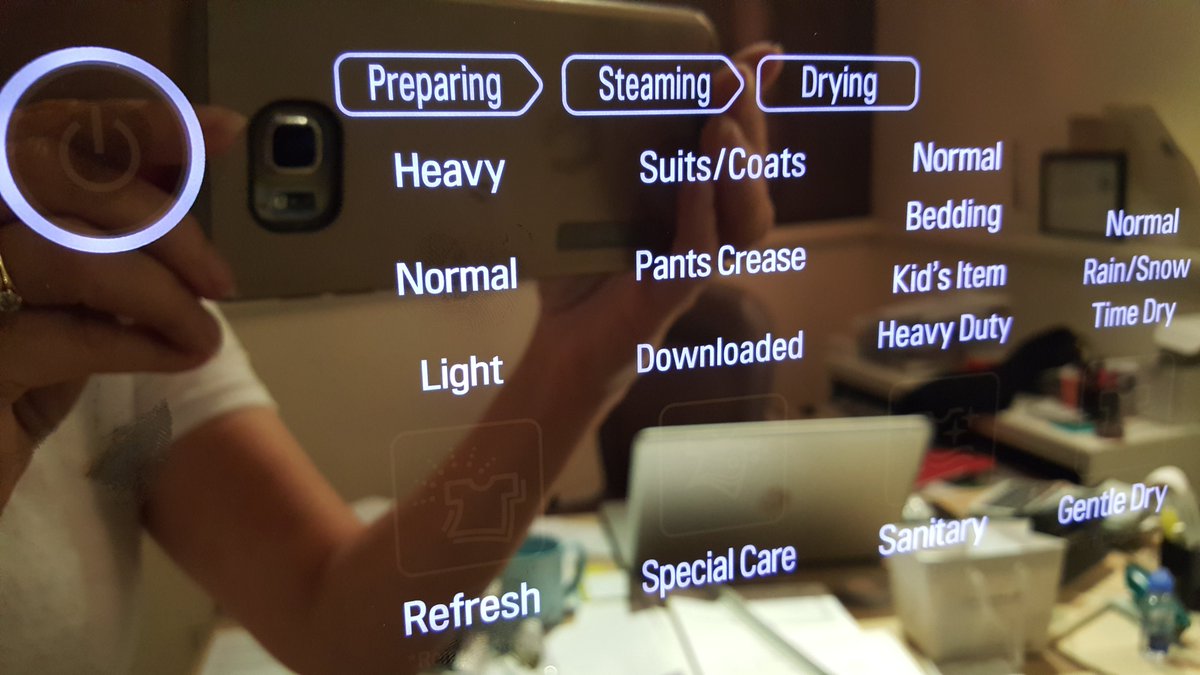 The LG Styler has lighted controls behind the mirrored door. Select the mode; refresh, special care, sanitary, gentle dry. This is instinctive, never had to read the instructions and so cool. A natural way to refresh