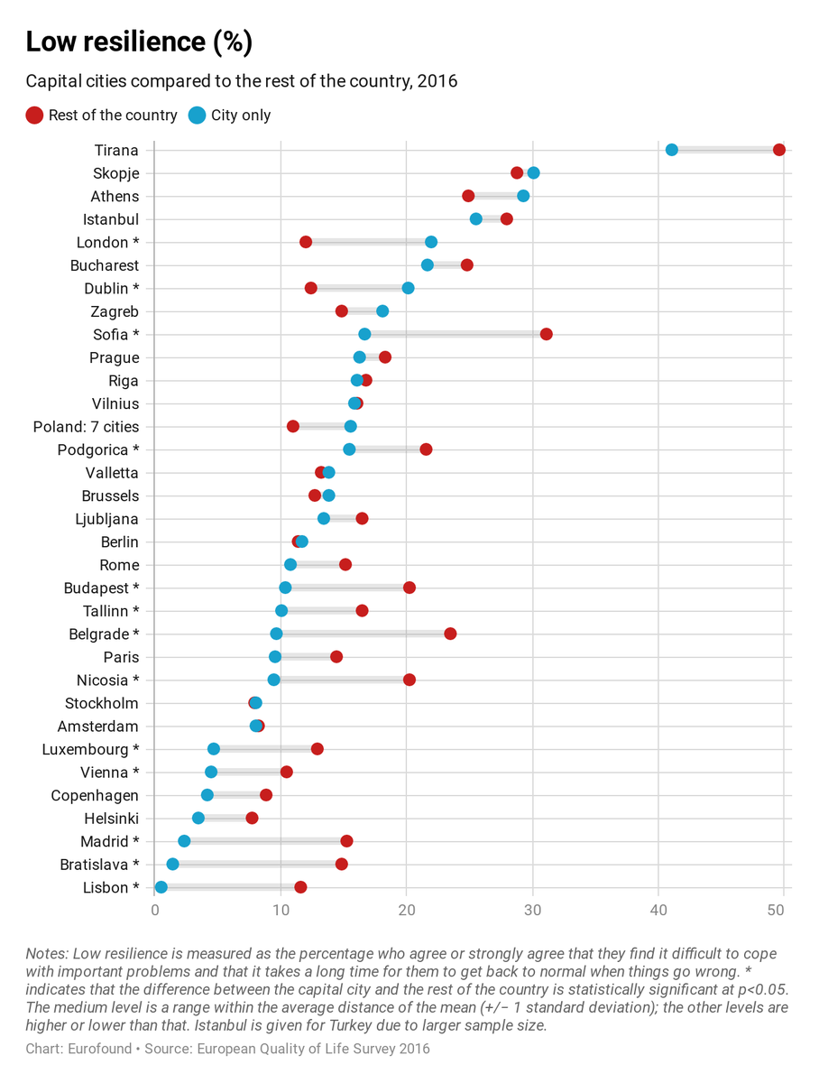 Dubliners are 7th LEAST resilient in Europe (in a list of European countries' largest cities). They find it hard to cope with important problems and take a long time to get back to normal when things go wrong.