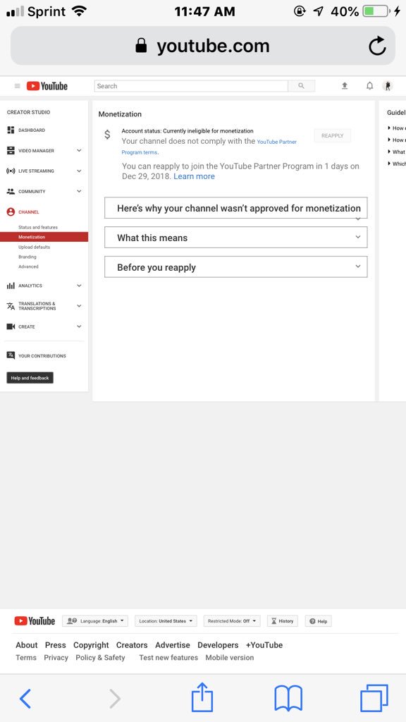 @YouTube Hey, when are y’all going to re monetize my channel? I need a response ASAP and I need it lifted ASAP