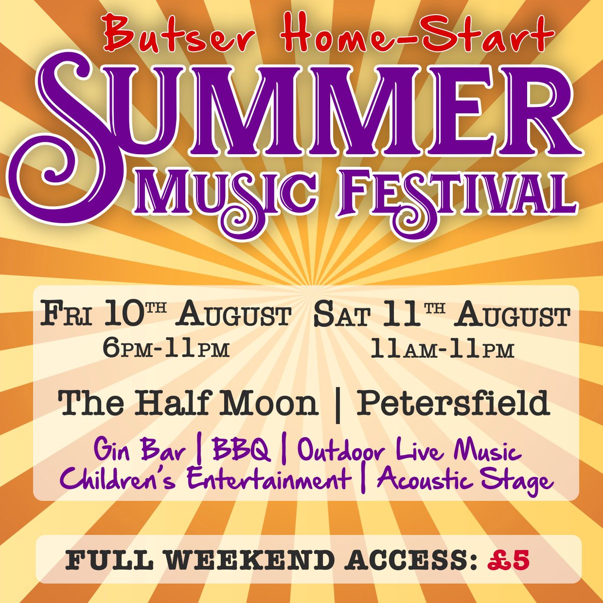 #Petersfield will be hosting their Summer Music Festival on the 10th and 11th August. Tickets are available on their website and 100% of ticket sales go straight to Home Start. You find out more about this amazing charity here: http://bit.ly/2lGyOaQ pic.twitter.com/CQePQLI3es