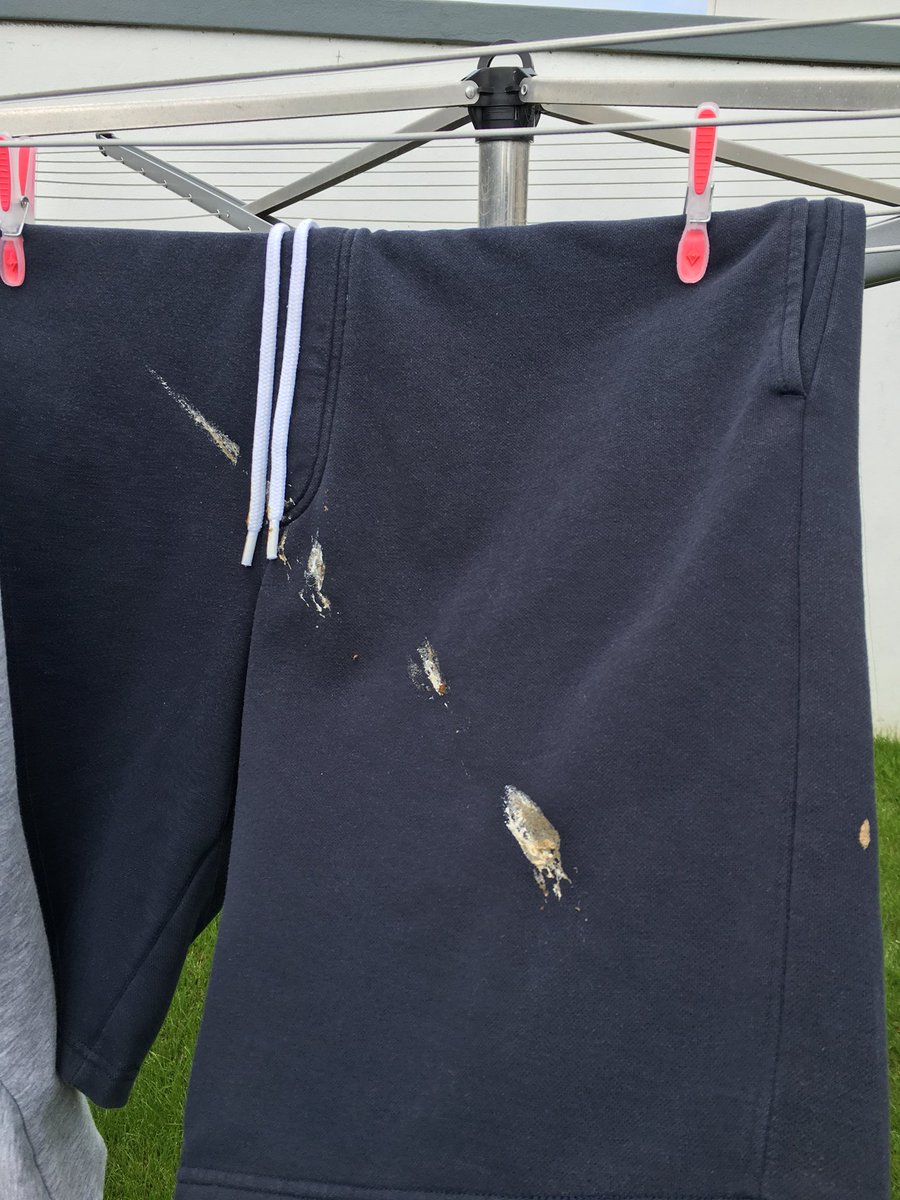 was getting my favourite shorts ready for the stream tomorrow but a bird shit all over them pic.twitter.com/x8cYvdIzpc