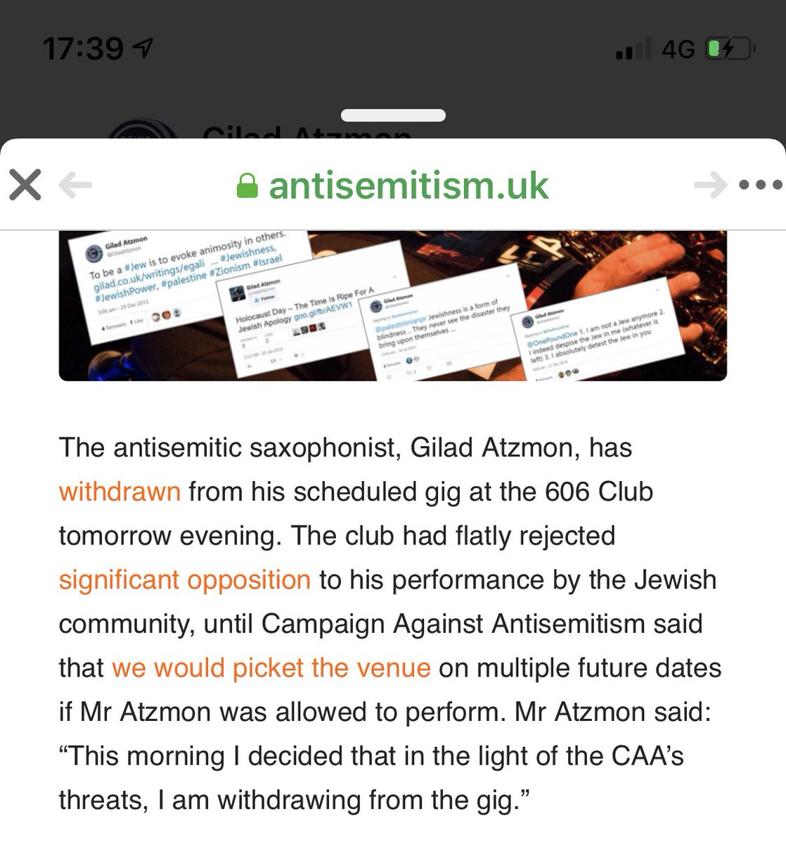 Can you think of any other charity in Britain that would brag about bullying a music venue, an international artist, music lovers? Of course I am not antisemitic but this is exactly the type of exceptionalism which I expose in my work...