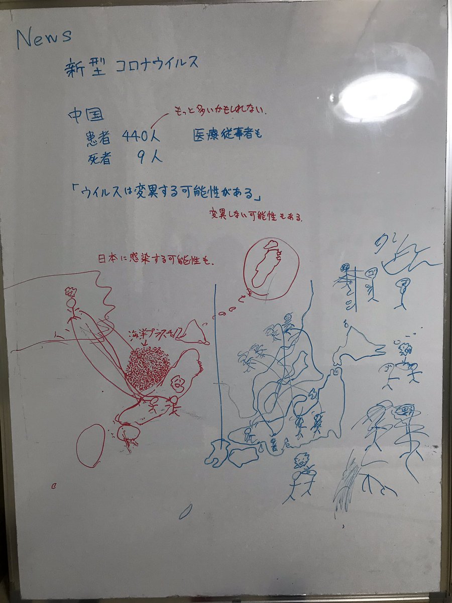 今日のBB塾では、子どもたちが「想像力のスイッチ」の話をするので、ひとつのニュースを取り上げて話しました。地図は、小学生たちの作図。