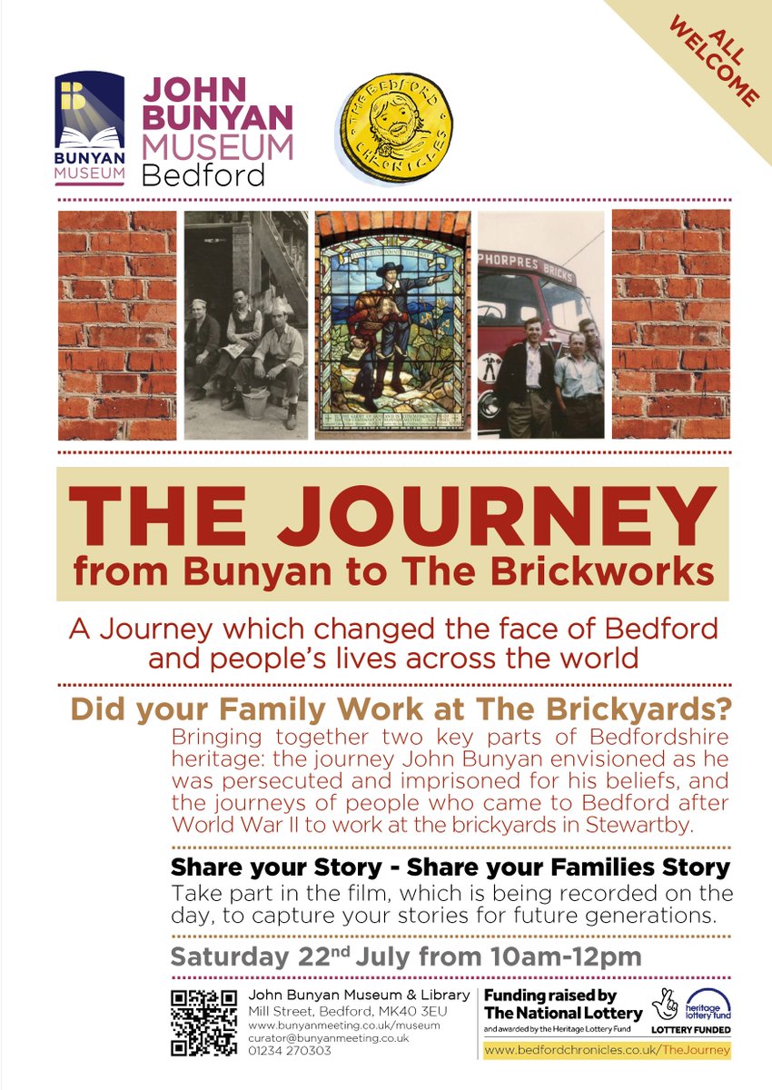 At the John Bunyan Museum on Sat 22 July Share your memories or your families memories Open to all & all welcome http://www.bedfordchronicles.co.uk/TheJourney.html pic.twitter.com/Tt4cF8neEe
