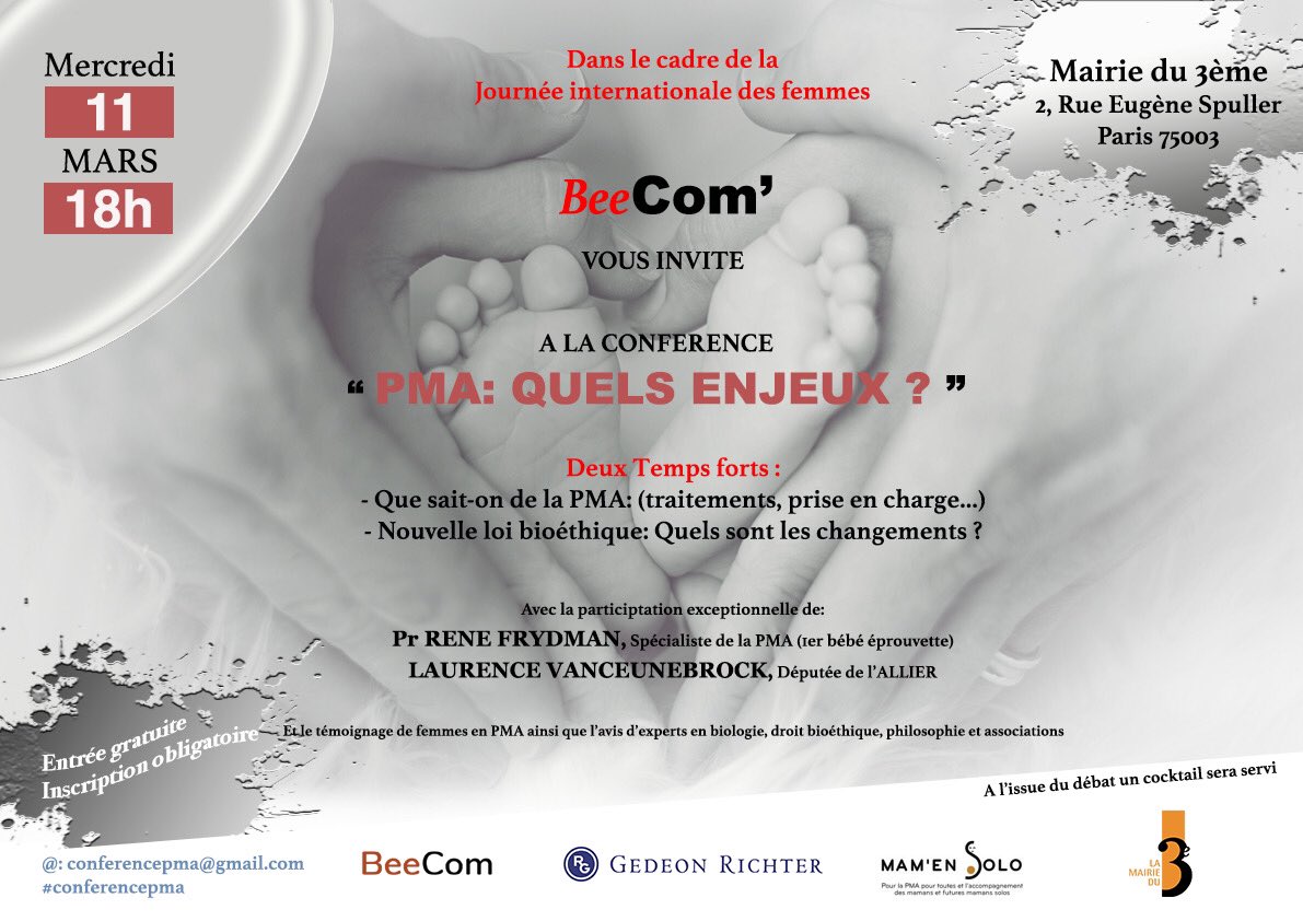 Conférence : « PMA, quels enjeux ? » Le 11 mars à Paris avec la participation exceptionnelle du Pr RENE FRYDMAN . Entrée gratuite, inscription obligatoire à conferencepma@gmail.com