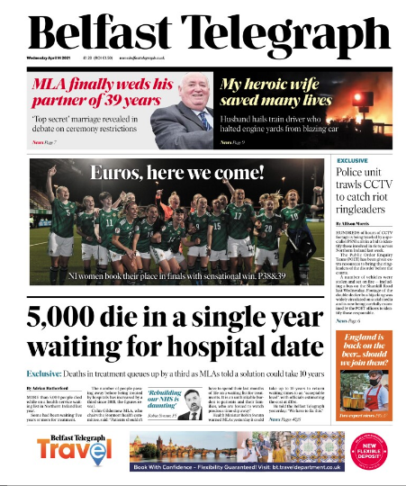 Good morning readers. Here's a look at today's front page of the Belfast Telegraph. Stay with