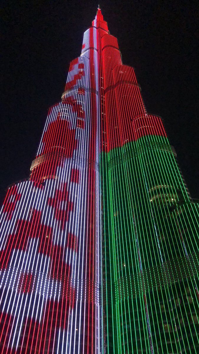 з Днём Незалежнасці ляцяць з усіх куткоў Зямлі! Другі год запар самы высокі будынак у свеце - небаскроб Бурдж-Халіфа - афарбаваўся ў колеры беларускага сцяга! З Днём Незалежнасці, каханая Беларусь! Дзякуй сябрам з Аб'яднаных Арабскіх Эміратаў за віншаванні!