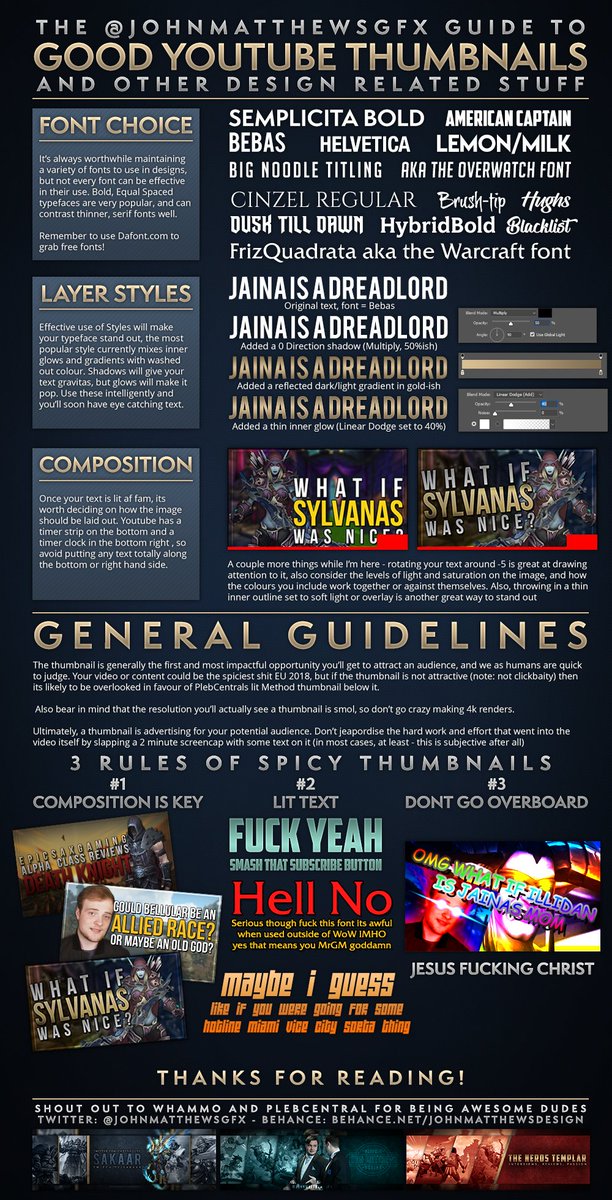 I've been asked countless times in @MrGMYT s Discord about how to effectively use YT Thumbnails so I put together this generic guide. I did manage to fit @BellularGaming and @plebcentral in there also. Feel free to RT and share around! #eSports #GraphicDesign #shittythumbnailspic.twitter.com/ezJrI6dPVv