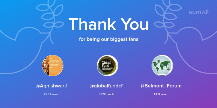Our biggest fans this week: @AgnishwarJ, @globalfundcf, @Belmont_Forum. Thank you! via https://sumall.com/thankyou?utm_source=twitter&utm_medium=publishing&utm_campaign=thank_you_tweet&utm_content=text_and_media&utm_term=7af4a9a8a6e3f1ef5b82dc59 …pic.twitter.com/rGtEU7QM0S