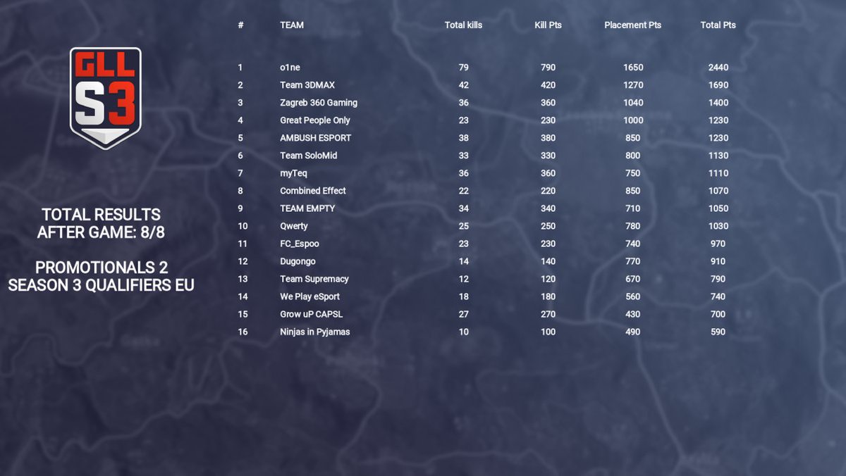 Qualifié pour la season 3 de la GLL !! GGs à mes mates et au petit @FanomPUBG pour son premier tournoi avec nous. Et bigup au team FR qui passe! @MustacheDave_ you are awesome