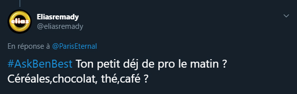 .@eliasremady: "What is your pro player breakfast in the morning? Cereals, chocolate, tea, coffee?"