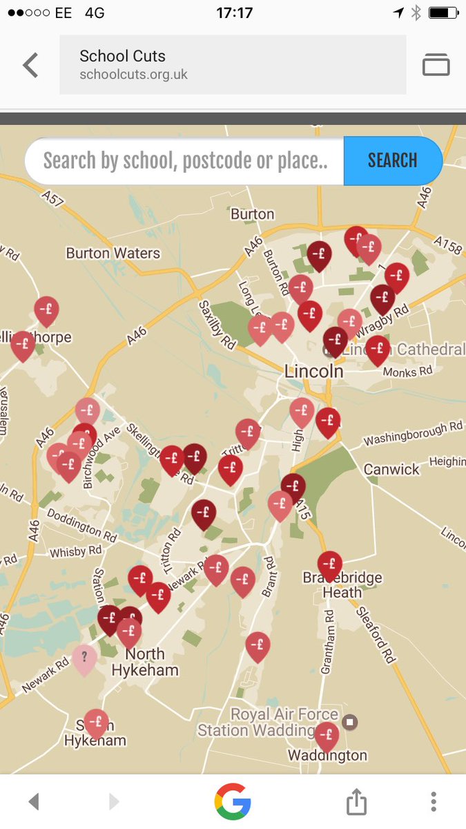The NUT have produced a handy website to tell if local schools will have a real term cut in funding per pupil under Conservative plans...pic.twitter.com/xyySs6cPCj