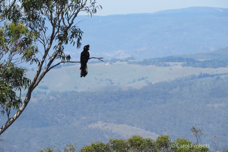It's lucky birds don't suffer from vertigo. Yellow-tailed Black-Cockatoo looking toward Mount Bindo, the highest point in the wider #BlueMountains region. #wildoz #Aussiebirdspic.twitter.com/Uo6bJ0Ddev