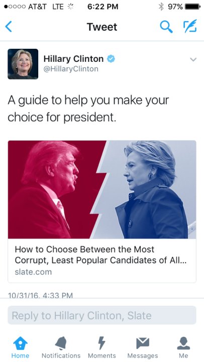 @benshapiro is trump now corrupt by association with@HillaryClinton ?Thanks. Twitter will use this to make your timeline better. Undo