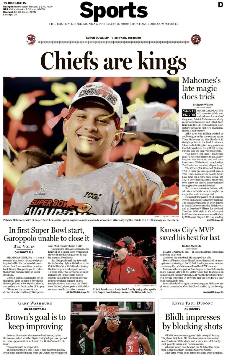 #SBLIV analysis: *Chiefs offense simply too hot to stop for a full 60 minutes *This wasn’t a total choke job, but Niners came up small in big moments *Mahomes was off his game until the 4Q, but Chiefs D kept it close *More!https://www.bostonglobe.com/sports/2020/02/02/patrick-mahomes-super-bowl-mvp-and-his-high-flying-offense-just-couldn-shut-down-route-win-over-ers/HHnIYumb8FKyhDcGlUUoCO/story.html …Hvala. Twitter će to iskoristiti za poboljšanje vaše vremenske crte. PoništiPoništi -