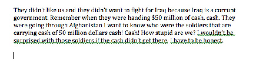 we had Iraqi soldiers bringing money? He's said it twice now.
