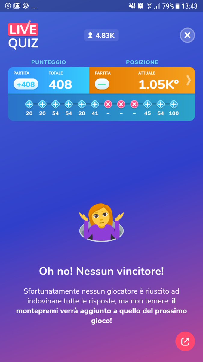 @livequiz_app quanto meno posso consolarmi con i 100 punti dell'ultima domanda...pic.twitter.com/LFcypfMiFM