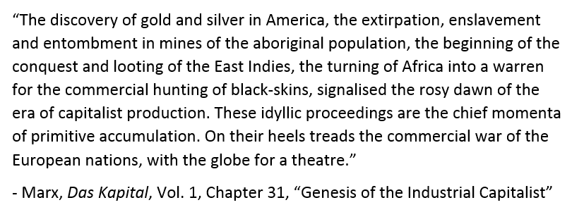 Marx writing in 1867 on the "rosy dawn" of capitalism, rooted in European colonialists' genocidal conquest of the Americas and enslavement of Africanspic.twitter.com/sVpfZoEMu3