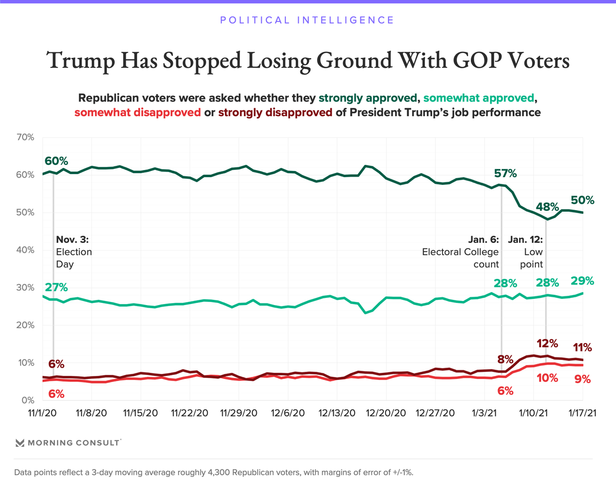Two thoughts, what is the error in such a poll? There needs to be a factual barrage of all the evidence coming out to counter the false flags and what-aboutism. The second is why we need a Senate trial.