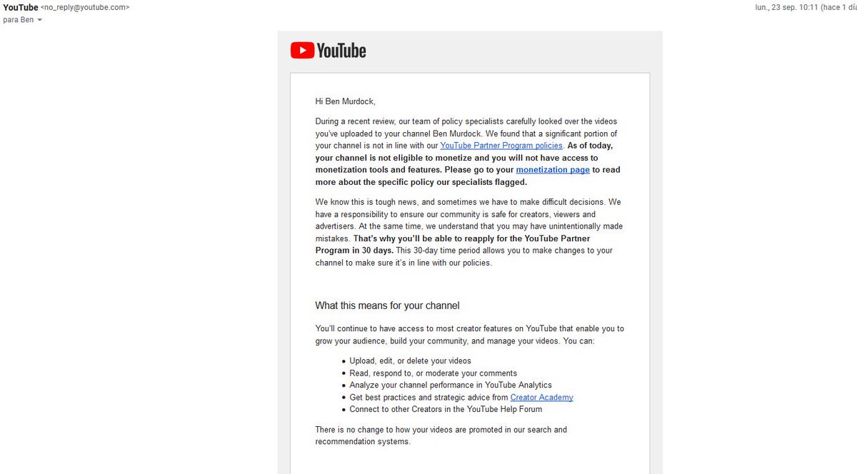 @TeamYouTube ¿Por qué aceparon la monetización y me la quitaron después de 10 días? Servicio lamentable,y soporte ineficiente