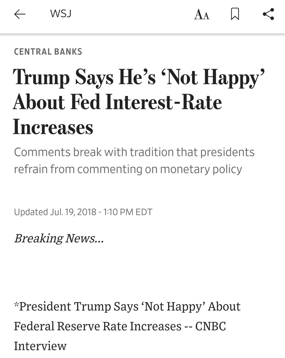 Oh great, now we can add the independence of the central bank to the list of pillars of our democracy and free-market destroyed by Trump If Obama had done this, Republicans would already be voting on impeachment!