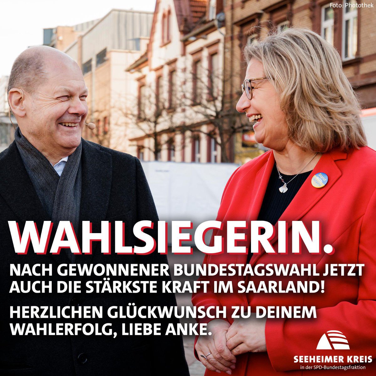 Doppelpack geholt! Nachdem Olaf Scholz die Bundestagswahl für sich entschieden hat, gewinnt nun Anke Rehlinger die Landtagswahl im Saarland klar und sorgt nach 22 Jahren für den notwendigen Politikwechsel. Herzlichen Glückwunsch zu Deinem großartigen Wahlsieg, liebe Anke!pic.twitter.com/rUH7U4v1PK