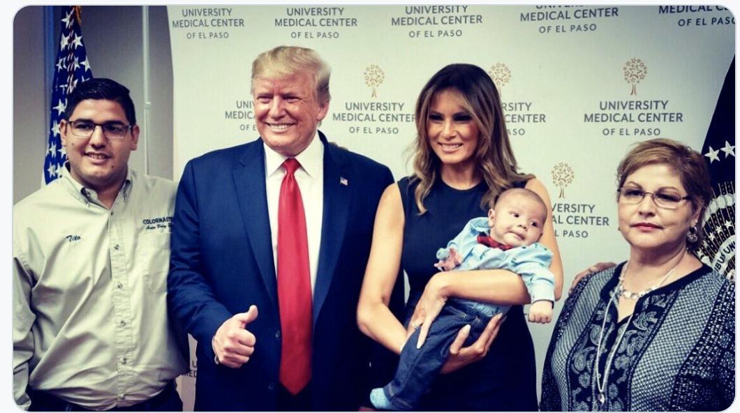 "Thumbs up to this adorable orphan, not only for agreeing to return to the hospital for my reelection photo-op, but because his parents were tremendous human shields. Thanks for your support, kid!"