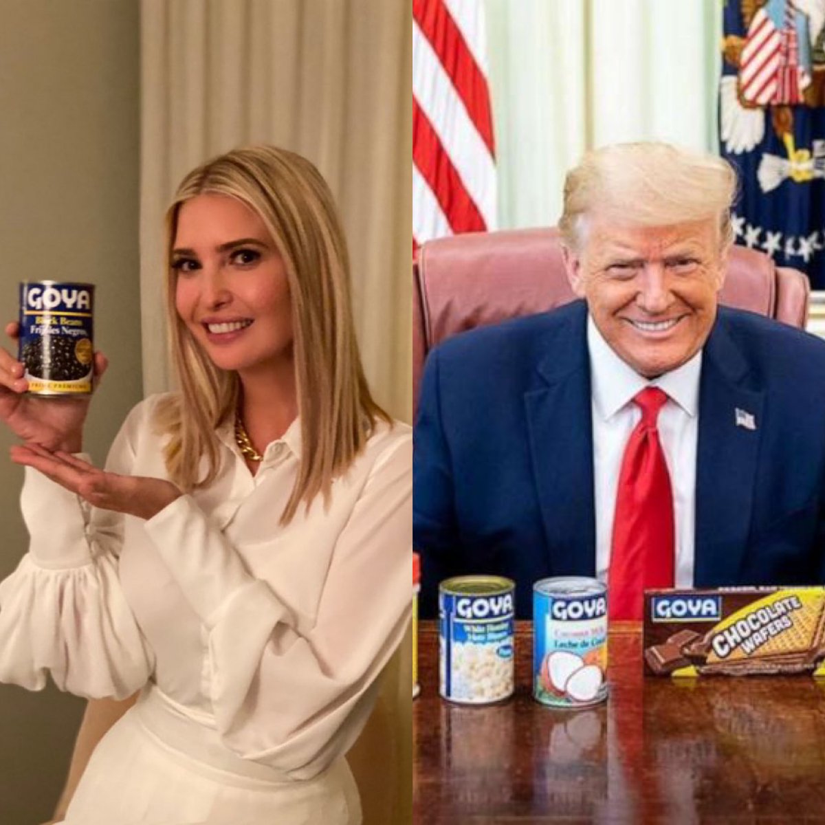 The President and his daughter. Selling canned beans.