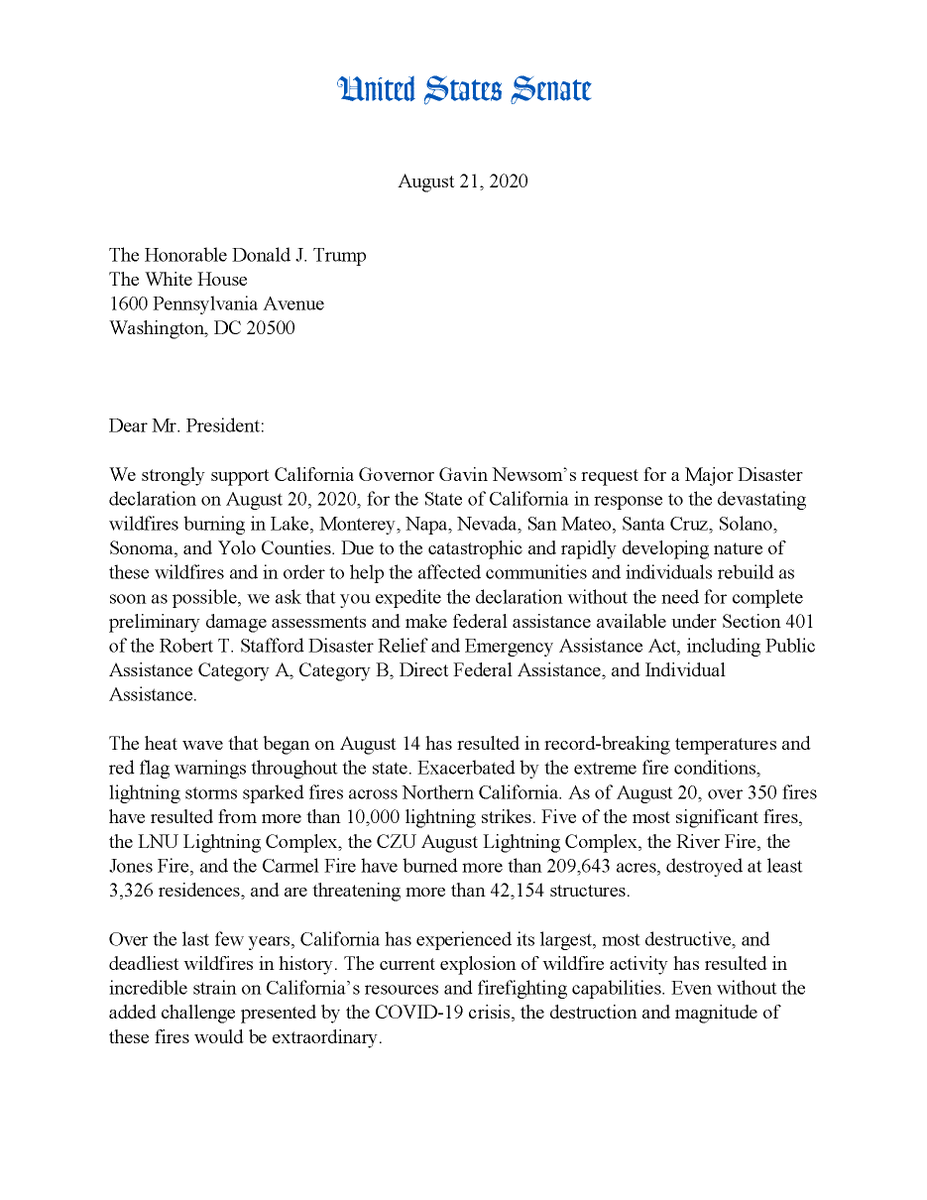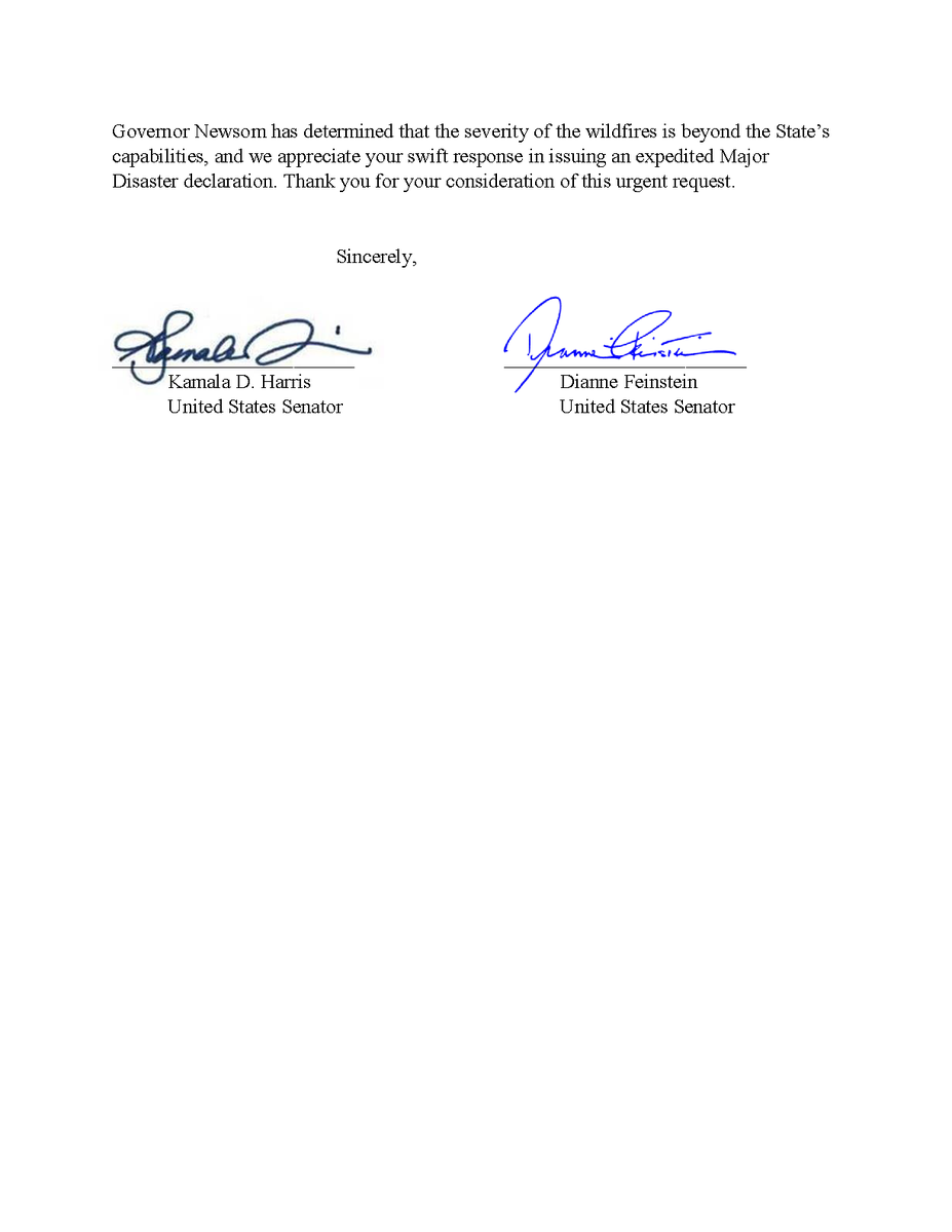 This week has seen more than 367 different wildfires start around California, which is why President Trump needs to approve @GavinNewsom’s request for a major disaster declaration immediately. @SenKamalaHarris and I just wrote a letter to the president. Read it here: pic.twitter.com/HE3xd0YliQ