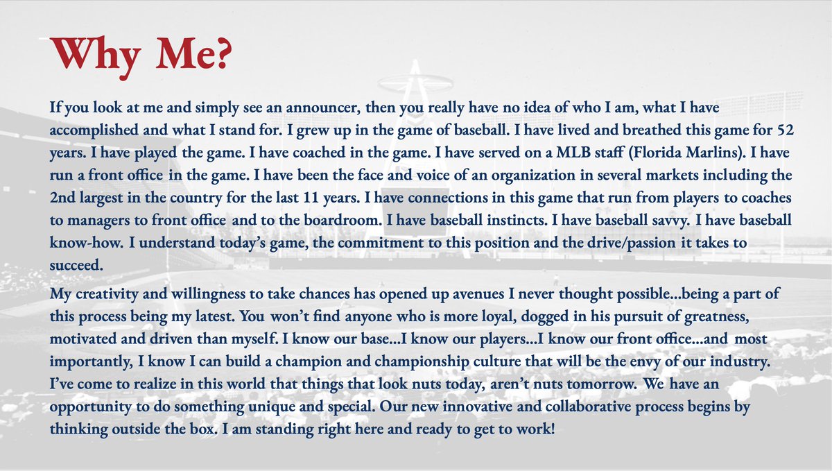 Now that I've officially been eliminated from consideration, I want to thank the @Angels organization for including me as a candidate for their GM position. There are a couple of attachments that explain how process played out for me over the last couple of weeks. #angelsfamilypic.twitter.com/70IPhgvvft
