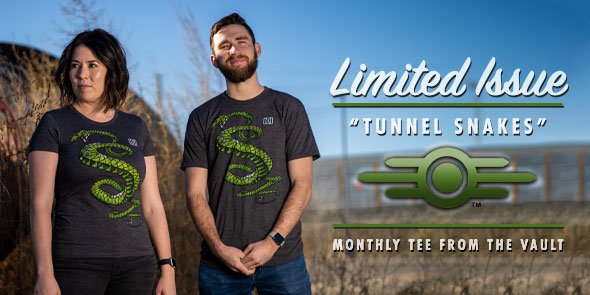 TUNNEL SNAKES RULE!! Revisit Vault 101 and grab this Tunnel Snakes Monthly Tee From The Vault before it's gone forever. https://beth.games/2EHkco6