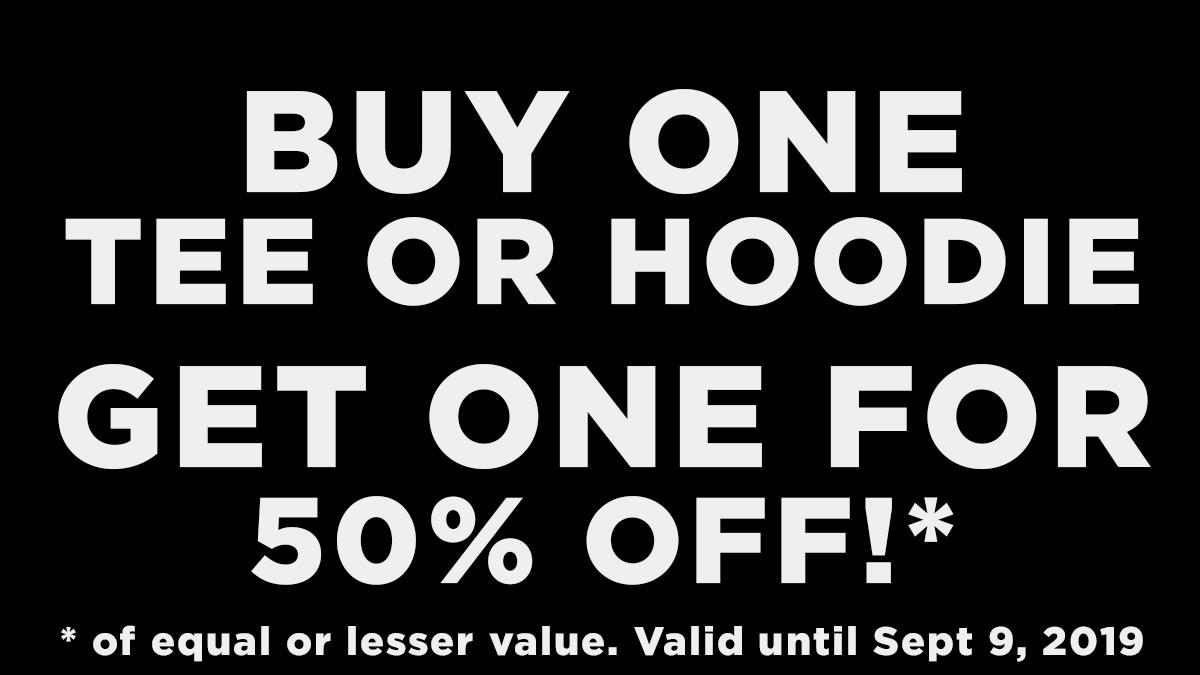 TEE AND HOODIE SALE! Buy one tee or hoodie and get another, of equal or lesser value, for 50% off! Valid until Sept 9, 2019 https://beth.games/2zRcMcF pic.twitter.com/3DLIgfISU1