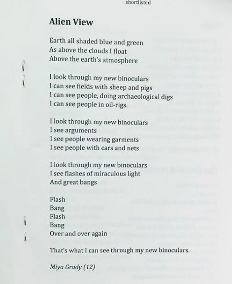 #NationalWritingDay . Celebrate by reading some works by our beautiful young poets involved in the#betejemanpoetryprize ! 'Books' by Nell Gardiner and 'Alien View' by Miya Gradypic.twitter.com/jldZRmokhL
