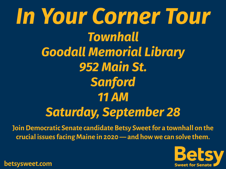 In recent elections, Sanford has had some of the lowest voter turnout in Maine. We need to fix that. On Saturday, Sept. 28, at 11 AM, I'll be at the Goodall Memorial Library for a townhall, to listen to the people of Sanford, because so few politicians seem to. #mepoliticspic.twitter.com/XCLyv3Vmdt